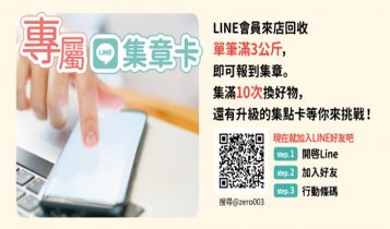 Line會員來店回收,單筆滿3公斤即可報到集章,集滿10次換好物!