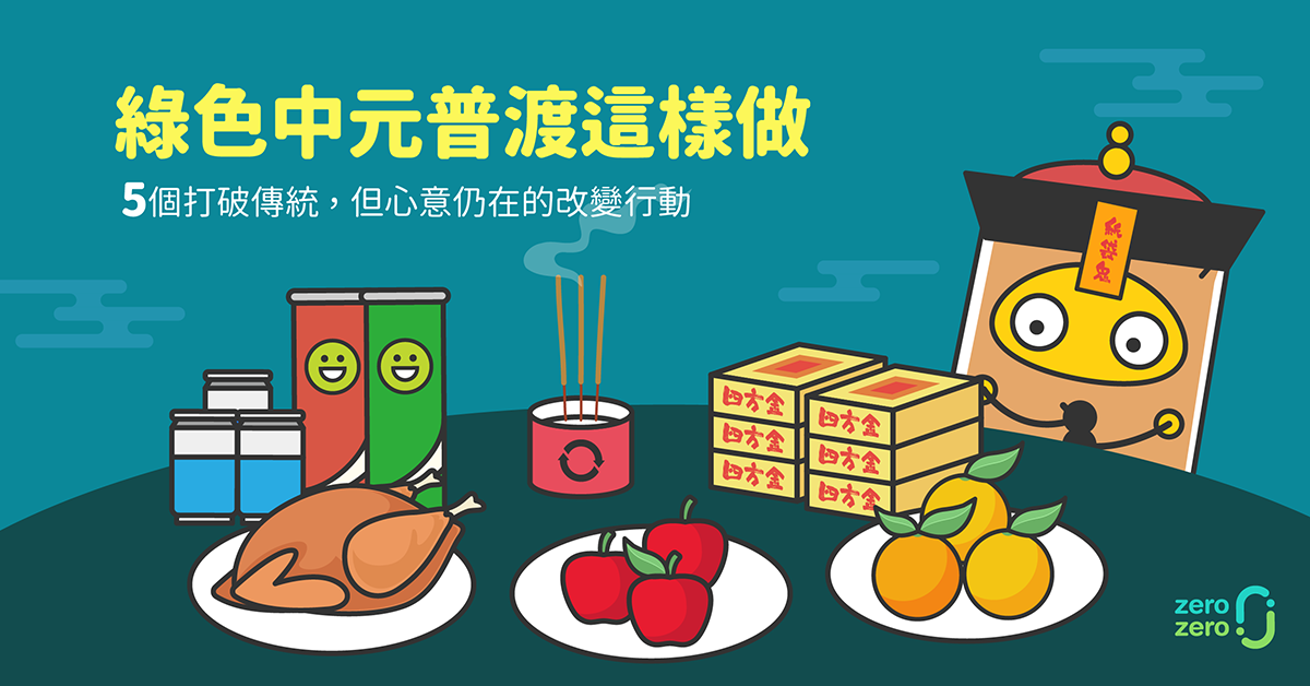 每年農曆七月十五日是所謂的中元節,是台灣重要且歷史悠久的民間習俗,每到這個時節,許多人的家裡都會準備豐盛的三牲四果以及零食、罐頭等來款待好兄弟,過程中還要燒香、燒紙錢,表達誠意。不過已經有許多專家學者與環保人士針對燒香的祭祀方式提出反思,家戶與宮廟同時大規模的祭祀過程中,燃燒釋放的PM2.5與有毒物質,所造成的空氣汙染不容小覷。我們不妨可以尋找新的方式,在心意不變的前提下,改變方法,一樣可以揪好兄弟一起歡度中元節哦!以下提供五個改變行動,今年,可以來點不一樣的普渡風格哦!