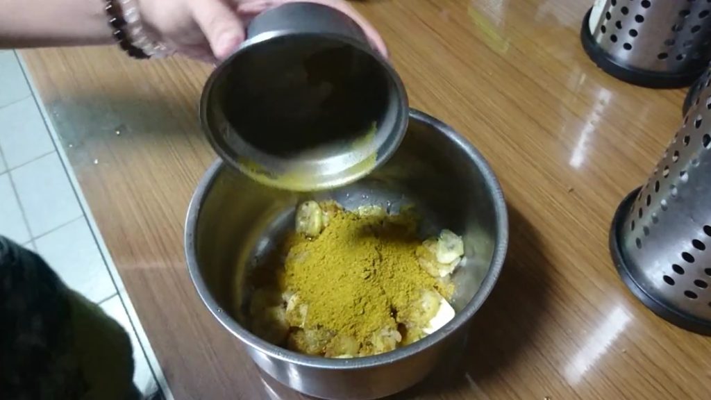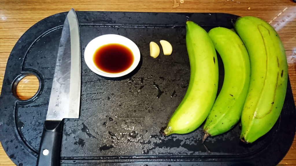 生香蕉1根、醬油、蒜頭