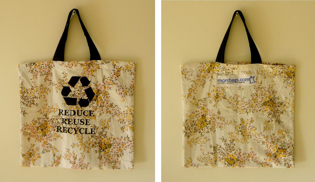 在購物時除了養成自備購物袋的習慣,還可更進一步選擇棉、麻等天然材質的購物袋,而不織布同樣屬於塑膠一族,甚至比塑膠袋更難被分解。