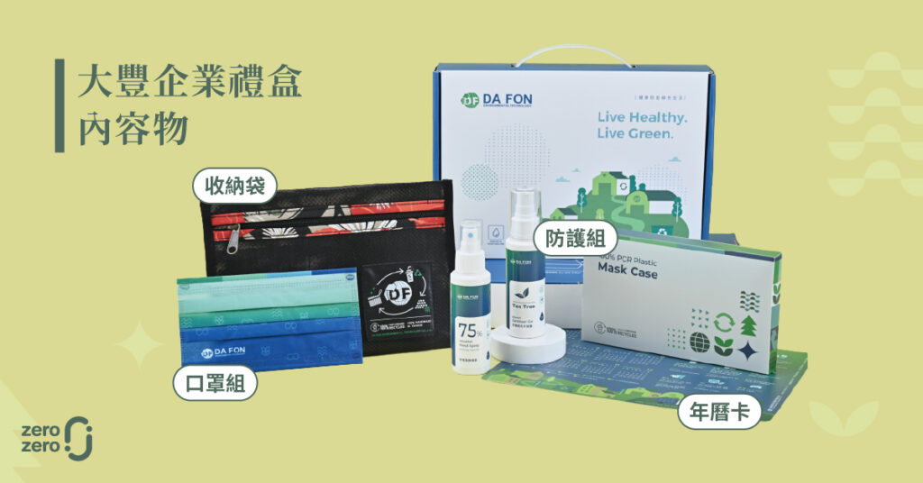- 口罩組:回收塑膠再製盒身,隨時備用口罩,能變身筆盒、小物收納盒,展現你的環保魅力 。
