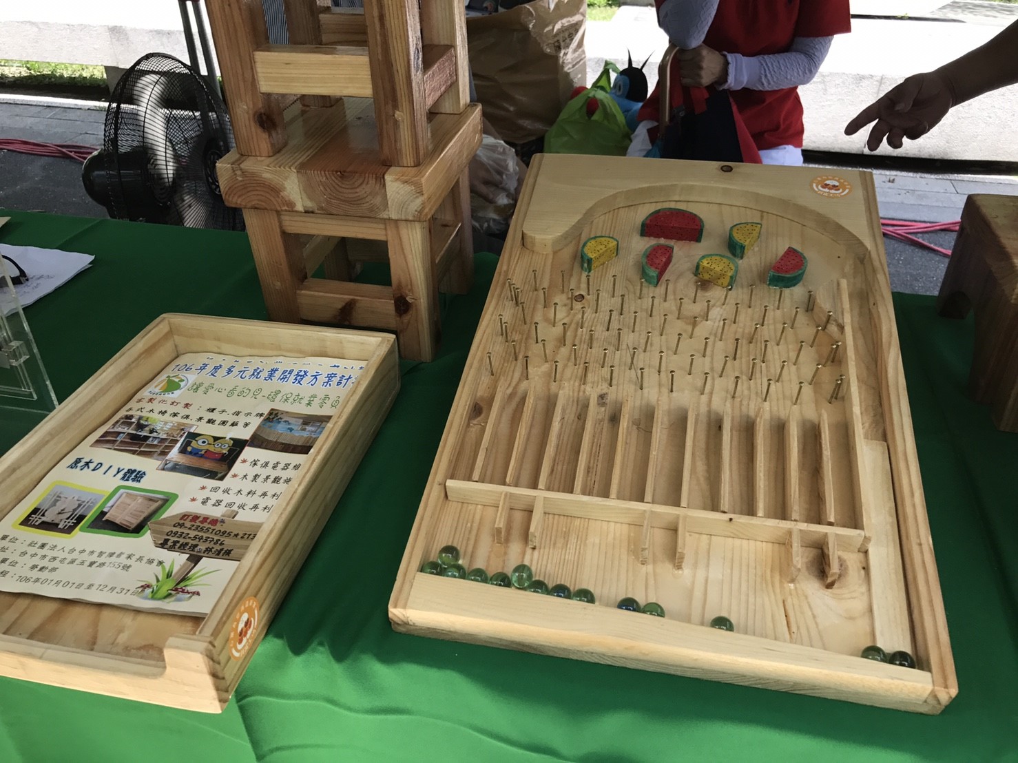 台中市智障者家長協會的慢飛兒童也是資源回收的環保尖兵,民眾可帶著回收物到協會交由慢飛兒童進一步篩選分類、賺取收入,除了做回收,慢飛兒童還會DIY木作藝品,綠動循環日當天也進行展售。