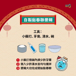 自製黏春聯浆糊:小蘇打、牙膏、清水、小碗