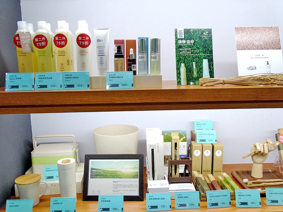 累積點數可兌換多樣民生用品,店內還有精挑細選的綠色環保商品,