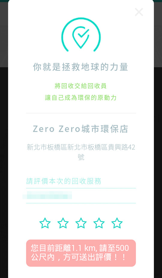 完成回收並給予回收據點評價(就是剛剛我說的類似打卡的概念),