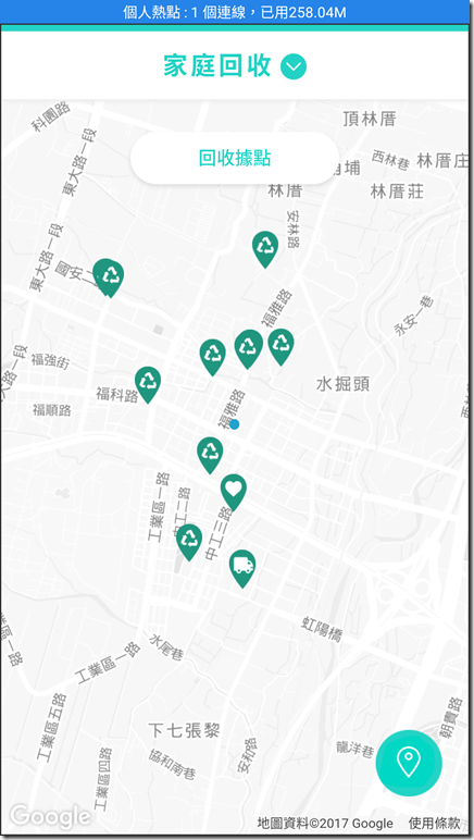zero zero的服務真的相當多,運用回收地圖功能可以查詢回收據點