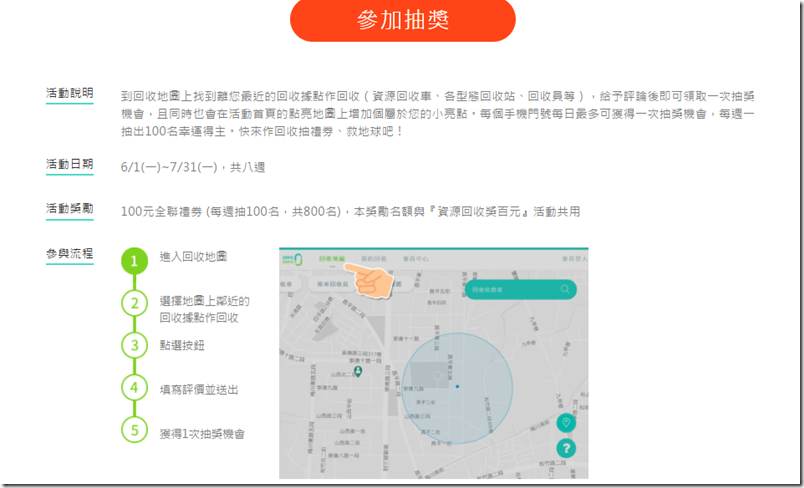 簡單四步驟就可以參加抽獎囉~~要記得距離回收站500M內才能給予評價唷!!