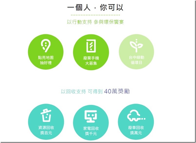現在還有打卡一起點亮大台中活動,更可以評價回收據點服務