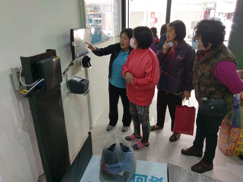 可愛的奶奶在店長的引導下自己完成回收囉,Ya!