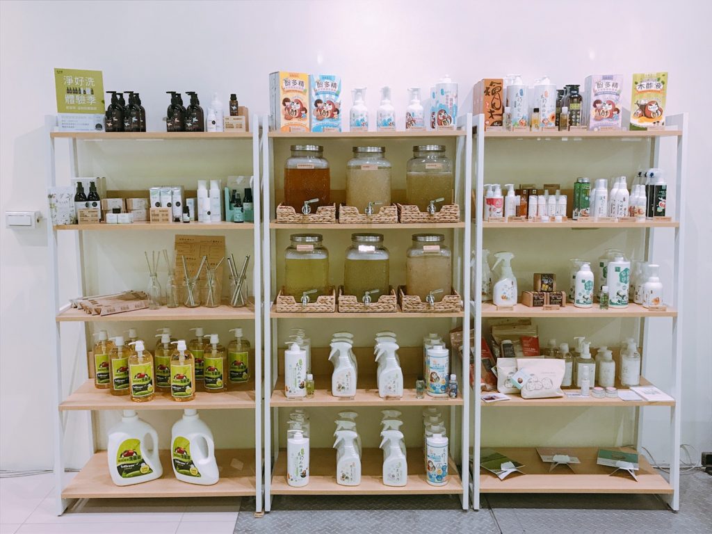 城市環保店除了回收服務,另一個主打就是精選台灣優質的「綠色商品」,看看這次滿滿的陳列架,真是有夠華麗的排場!除了合作已久的台東有機香草洗沐品牌「璞草園」、綠色環保洗劑專家「TriGreen」,以及寶寶也愛用的無添加保養品牌「earth friend」,此次更邀到QC館不鏽鋼吸管進駐綠色商品區,邀請大家往零廢棄行動更進一步!
