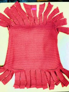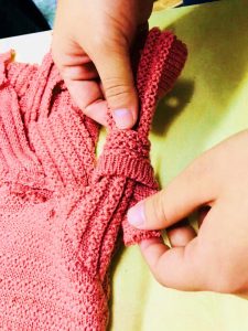 3. 確認好位置後將毛衣上下剪開成一段一段