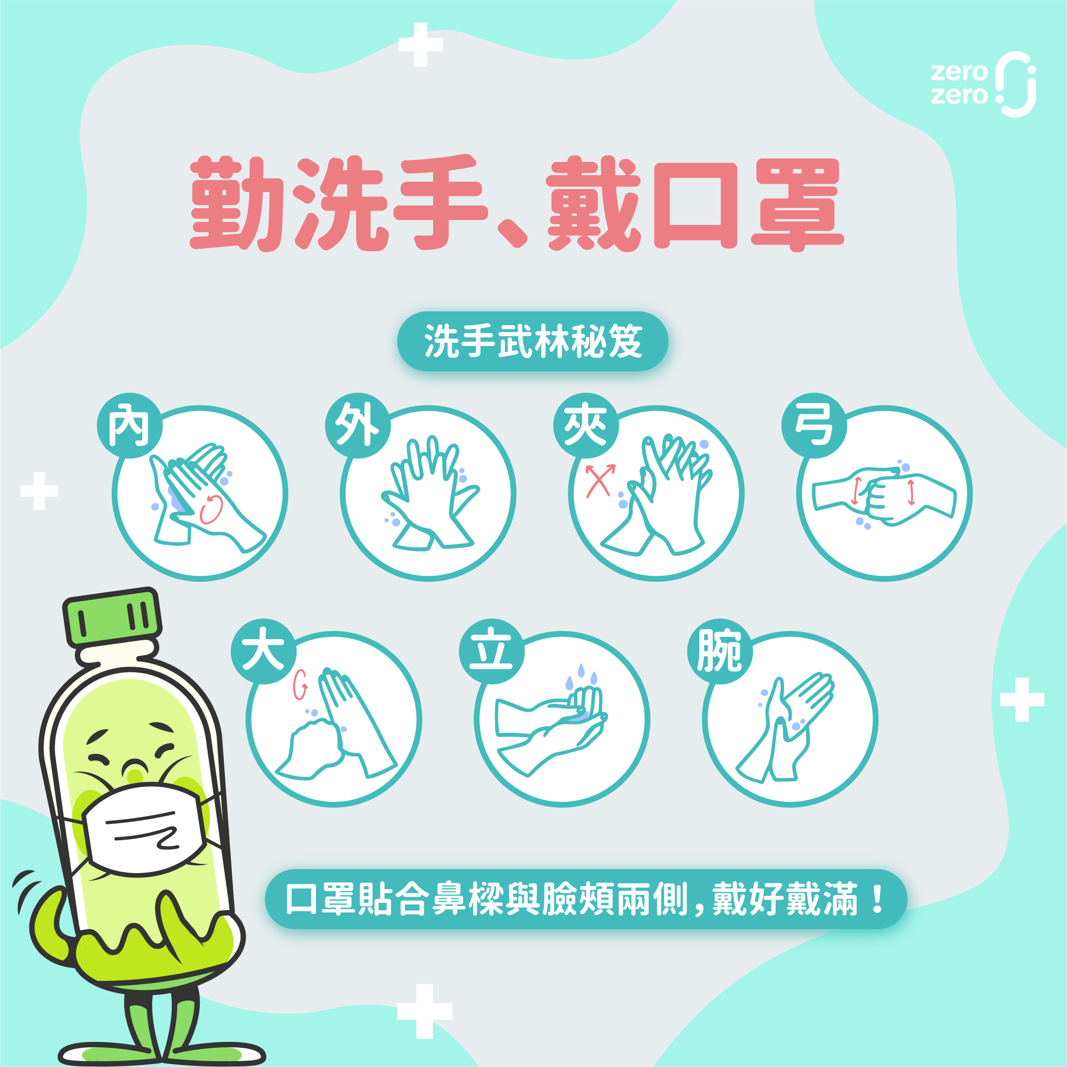 疫情間最常被提起、卻也最容易忽略的環節,就是勤洗手、戴口罩了,如果洗手只是隨便沖沖、戴口罩只是隨意掛個樣子,當心病毒在你卸下心防的時候悄悄入侵!洗手時請把「內外夾弓大立腕」當成武林秘笈默念,把手洗乾淨絕對是遠離病毒的護身符;口罩則要注意鼻樑與臉頰兩側都是密合的狀態,別讓鼻子大半露出、或把口罩掛在下巴,才不會防疫白做工。